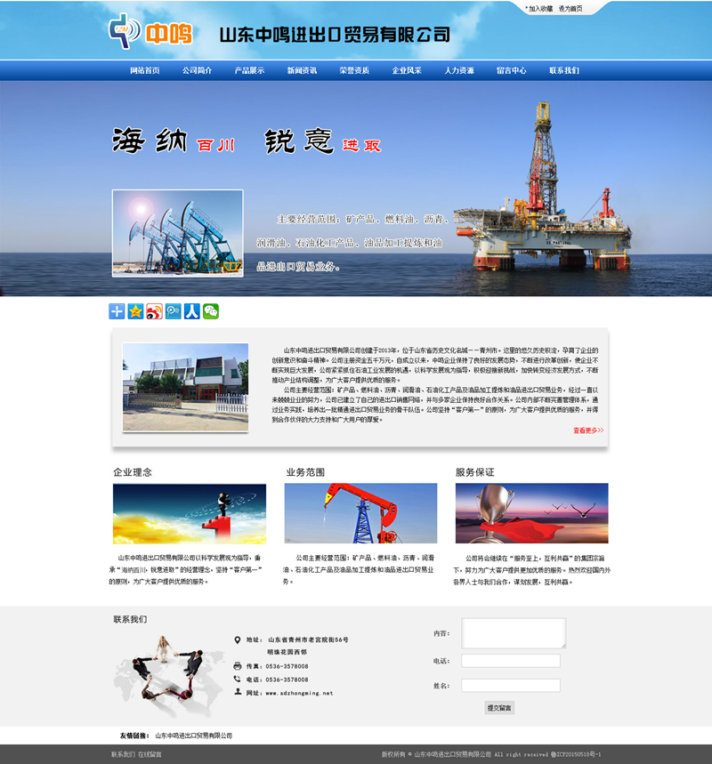 山東中鳴進(jìn)出口貿(mào)易有限公司創(chuàng)建于2013年,位于山東省歷史文化名城——青州市。這里的悠久歷史積淀,孕育了企業(yè)的創(chuàng)新意識和奮斗精神。公司注冊資金五千萬元,自成立以來,中鳴企業(yè)保持了良好的發(fā)展態(tài)勢,不斷進(jìn)行改革創(chuàng)新,使企業(yè)不斷實(shí)現(xiàn)巨大發(fā)展,公司緊緊抓住石油工業(yè)發(fā)展的機(jī)遇,以科學(xué)發(fā)展觀為指導(dǎo),積極迎接新挑戰(zhàn),加快轉(zhuǎn)變經(jīng)濟(jì)發(fā)展方式,不斷推動產(chǎn)業(yè)結(jié)構(gòu)調(diào)整,為廣大客戶提供優(yōu)質(zhì)的服務(wù)。
